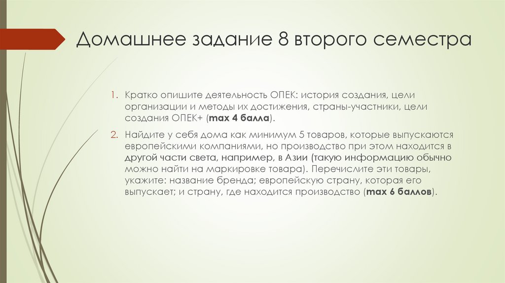 Домашнее задание 8 второго семестра1. Кратко опишите деятельность ОПЕК: история создания, цели