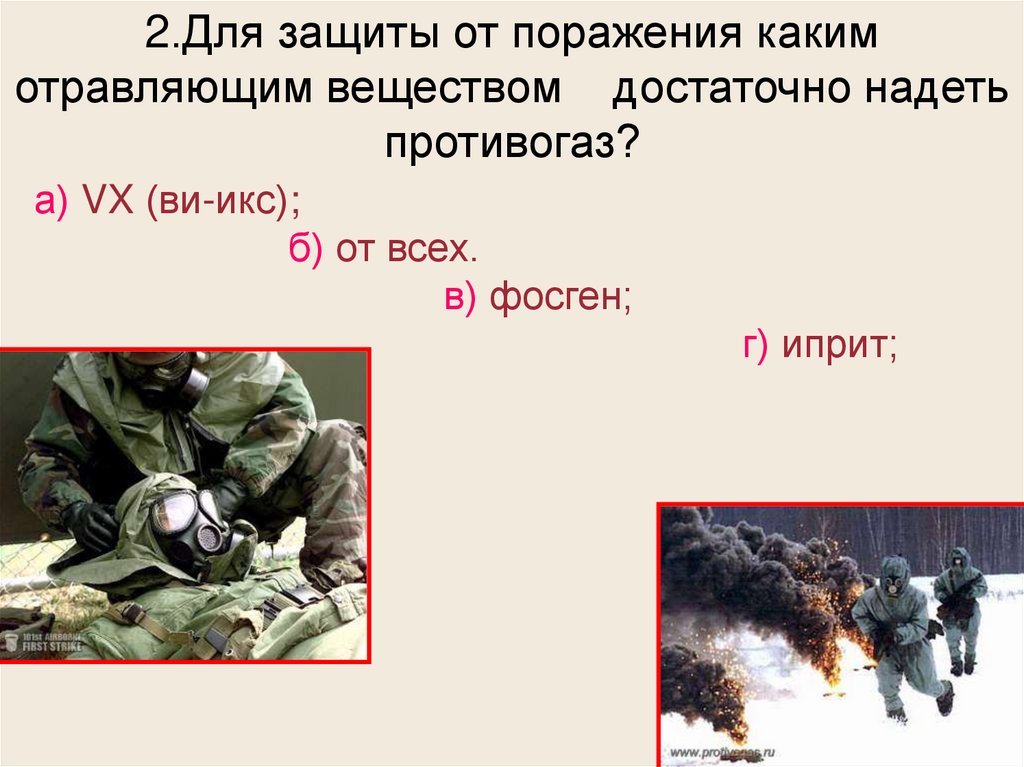 2.Для защиты от поражения какимотравляющим веществом достаточно надеть