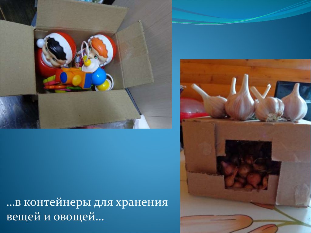 …в контейнеры для хранениявещей и овощей…