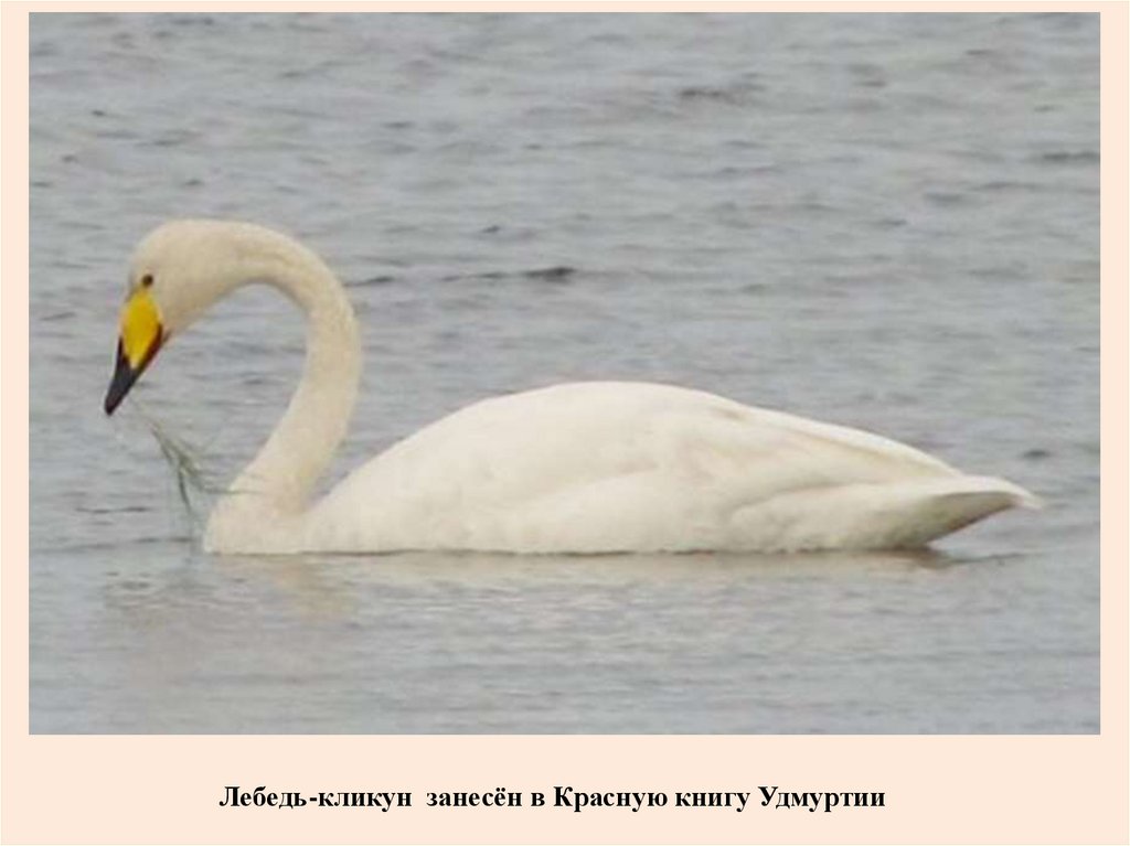 Лебедь-кликун занесён в Красную книгу Удмуртии19.