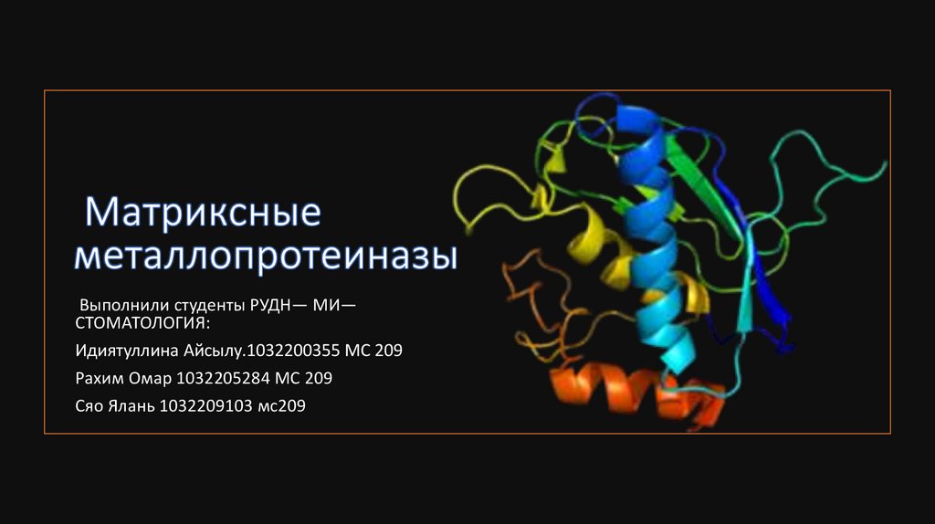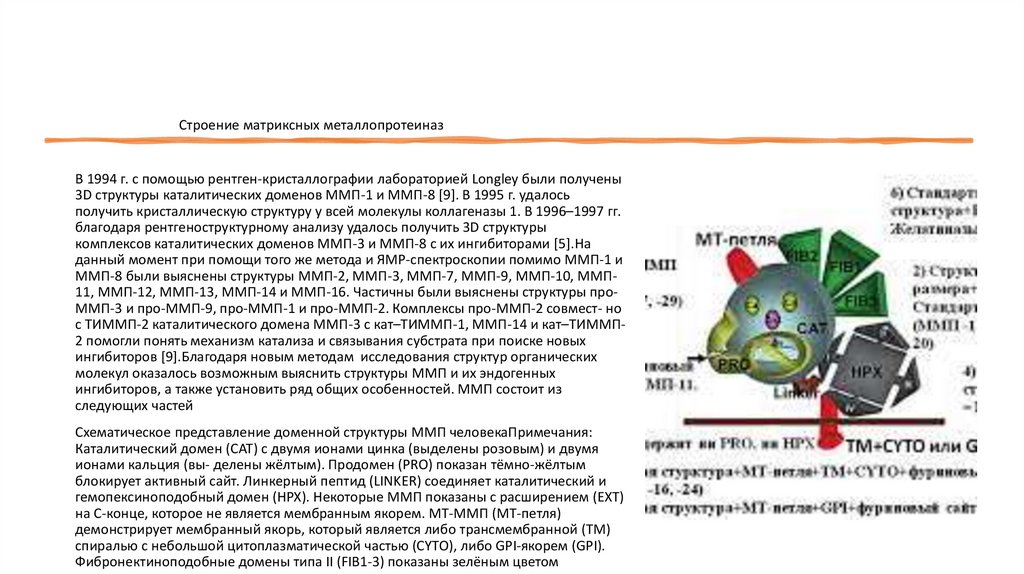 Строение матриксных металлопротеиназВ 1994 г. с помощью рентген-кристаллографии лабораторией Longley были получены