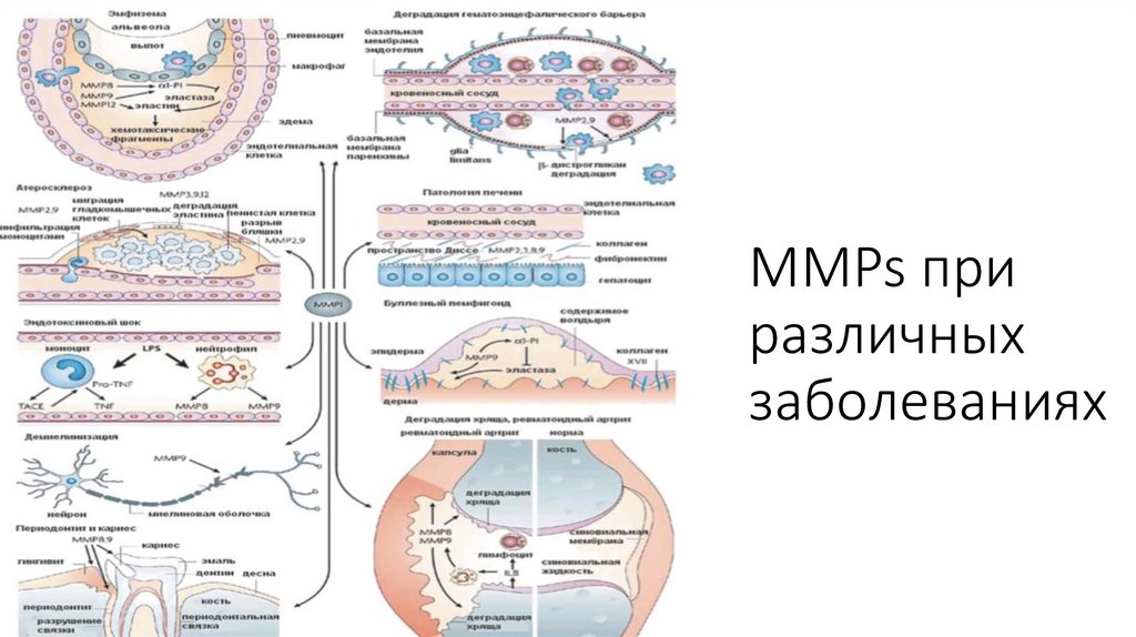 • Активно изучается роль ММП при ревматоидных артритах, остеоартритах,