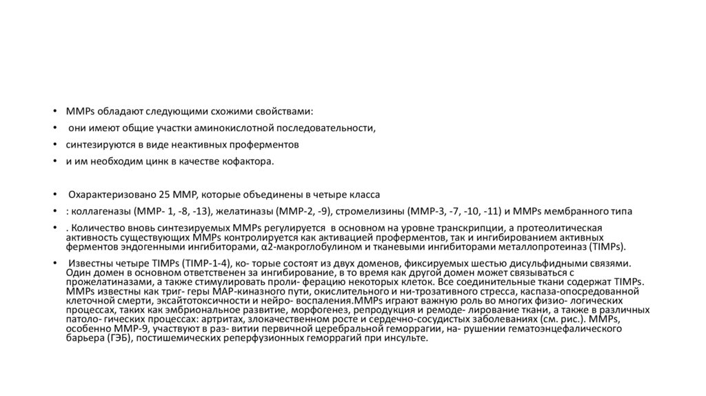 клеточной смерти, эксайтотоксичности и нейро- воспаления.MMPs играют важную роль во многих физио- логических