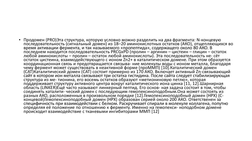 чему фермент может существовать в неактивной форме (проММП) [10].Каталитический домен