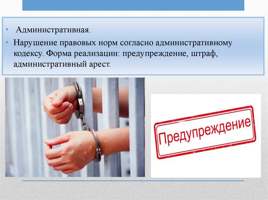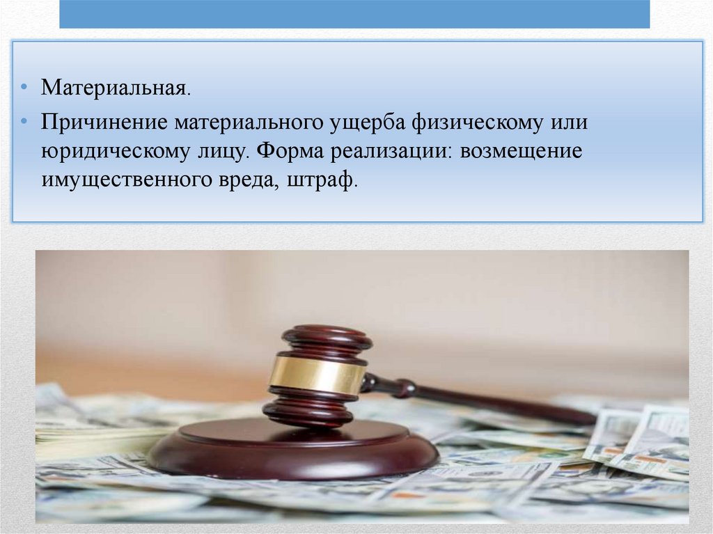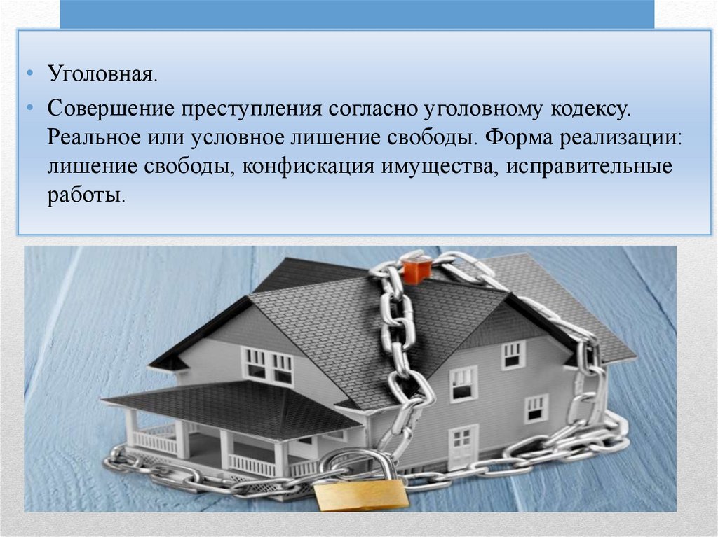 • Уголовная.• Совершение преступления согласно уголовному кодексу.