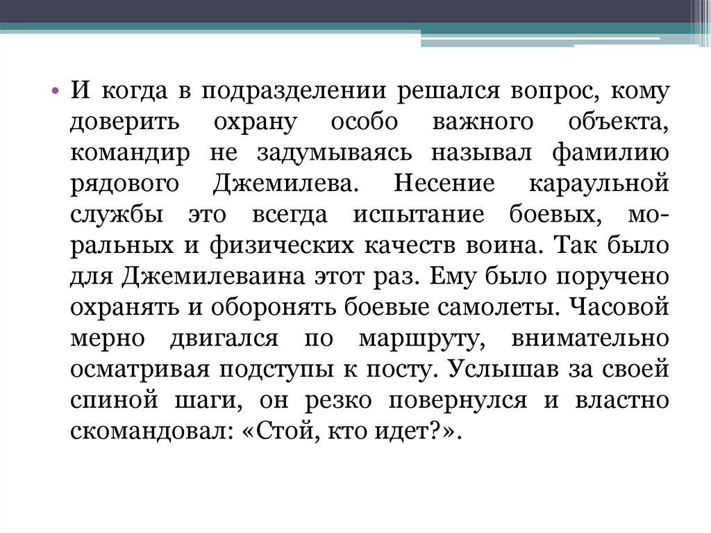 рядового Джемилева. Несение караульной
