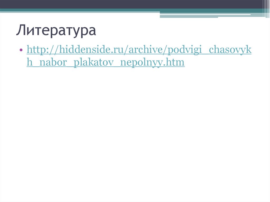 Литература• http://hiddenside.ru/archive/podvigi_chasovyk