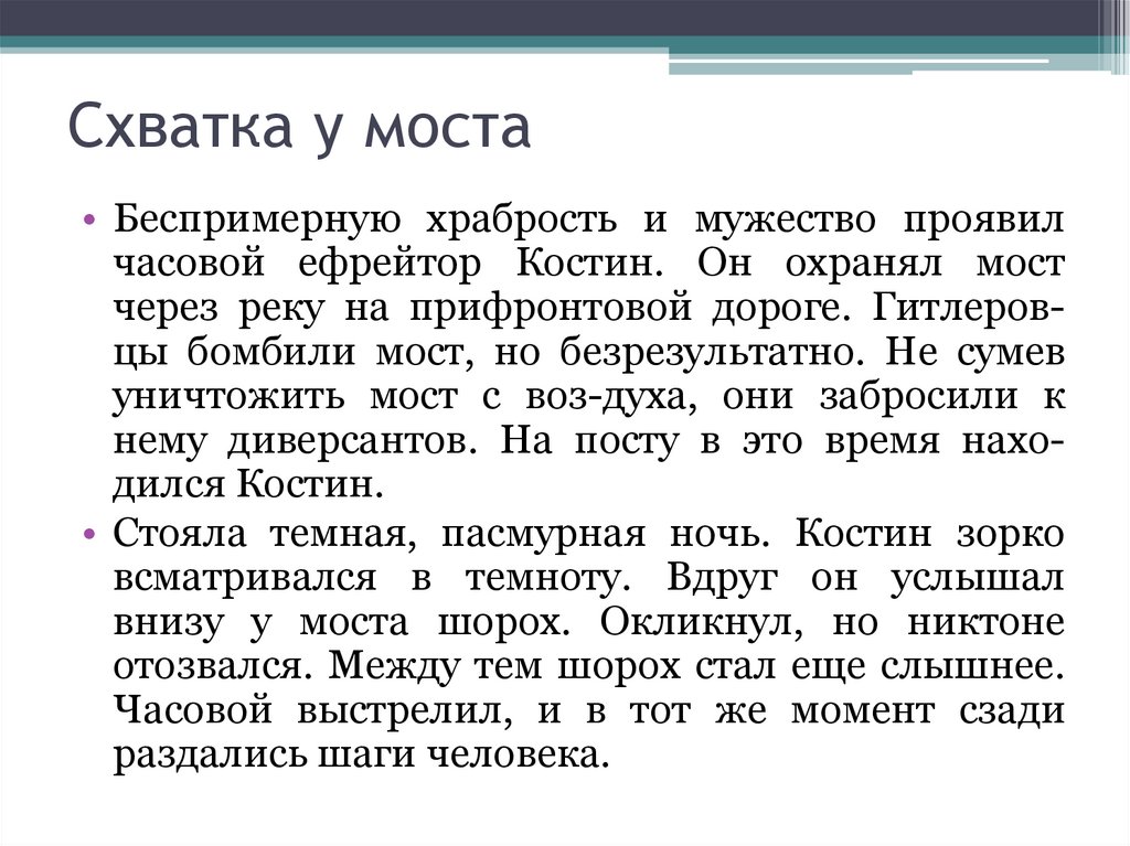 Схватка у моста• Беспримерную храбрость и мужество проявил