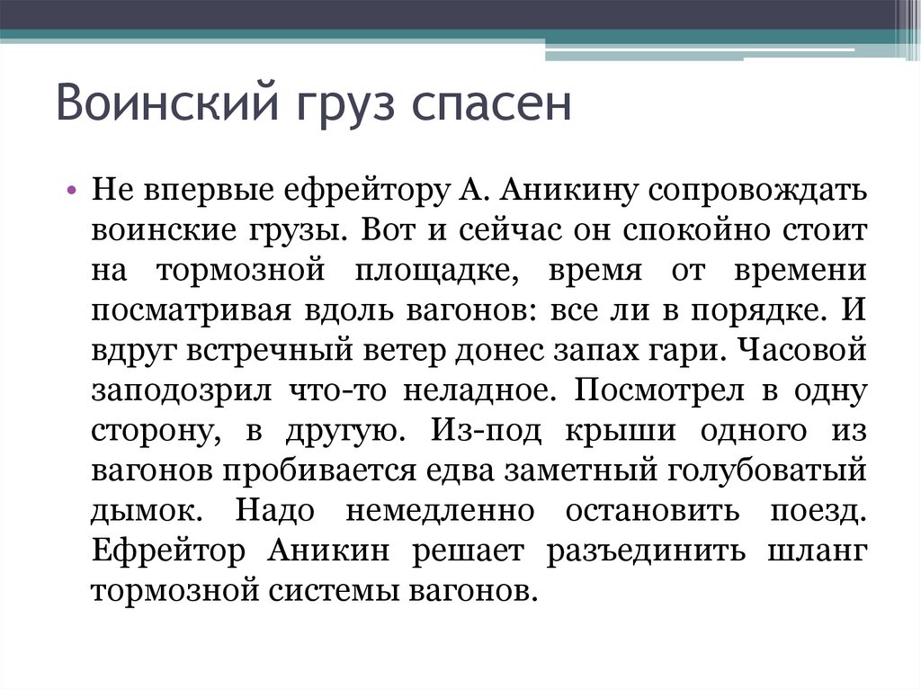 Воинский груз спасен• Не впервые ефрейтору А. Аникину сопровождать
