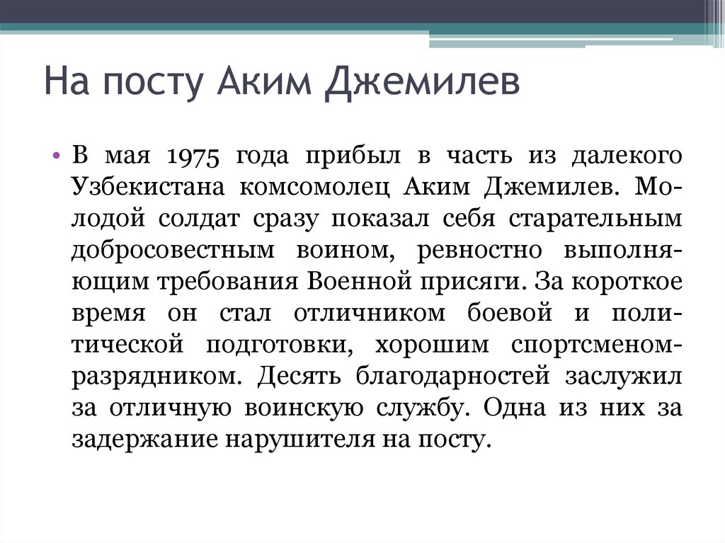 На посту Аким Джемилев• В мая 1975 года прибыл в часть из далекого