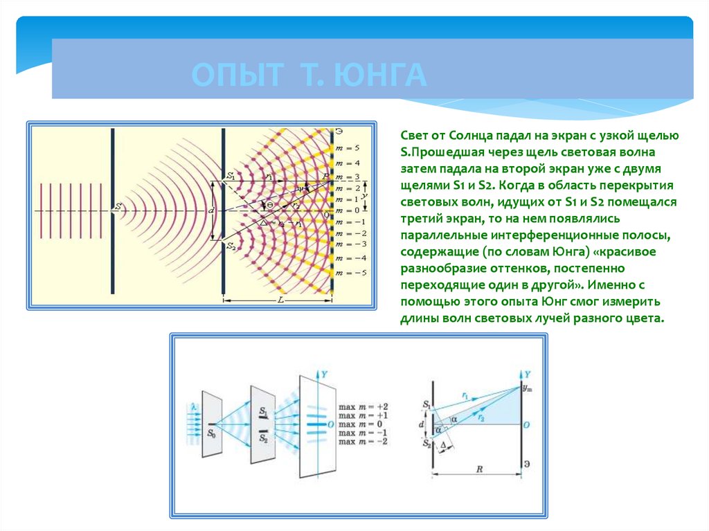ОПЫТ Т. ЮНГАСвет от Солнца падал на экран с узкой щелью