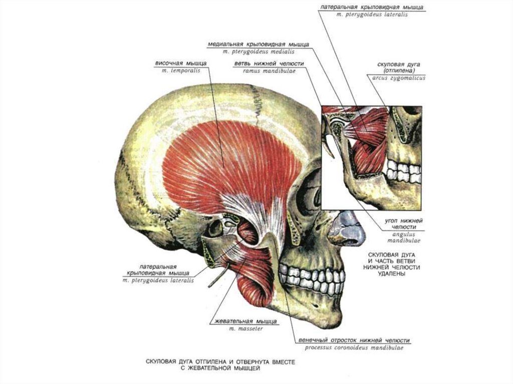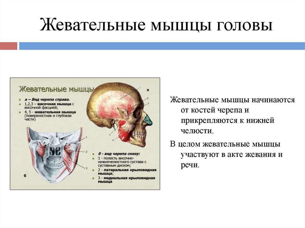 Жевательные мышцы головыЖевательные мышцы начинаются