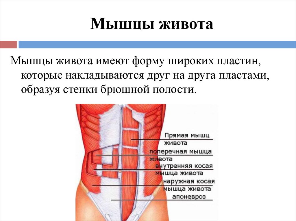 Мышцы животаМышцы живота имеют форму широких пластин,