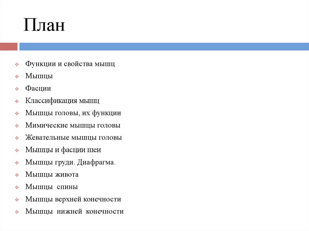 ПланФункции и свойства мышц