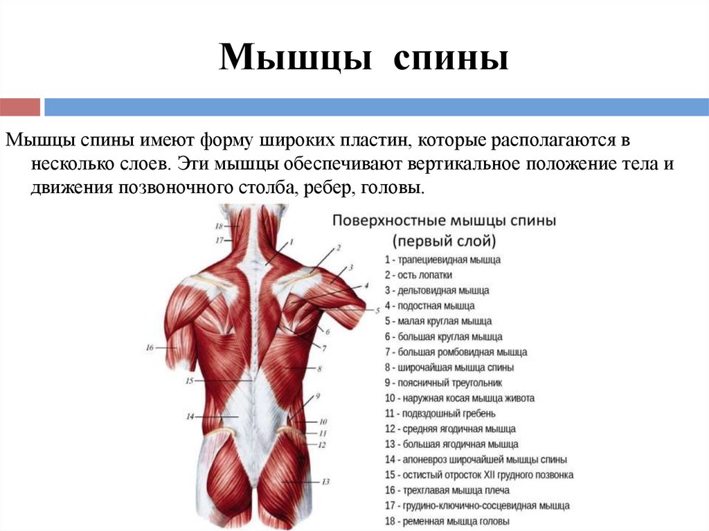 Мышцы спиныМышцы спины имеют форму широких пластин, которые располагаются в