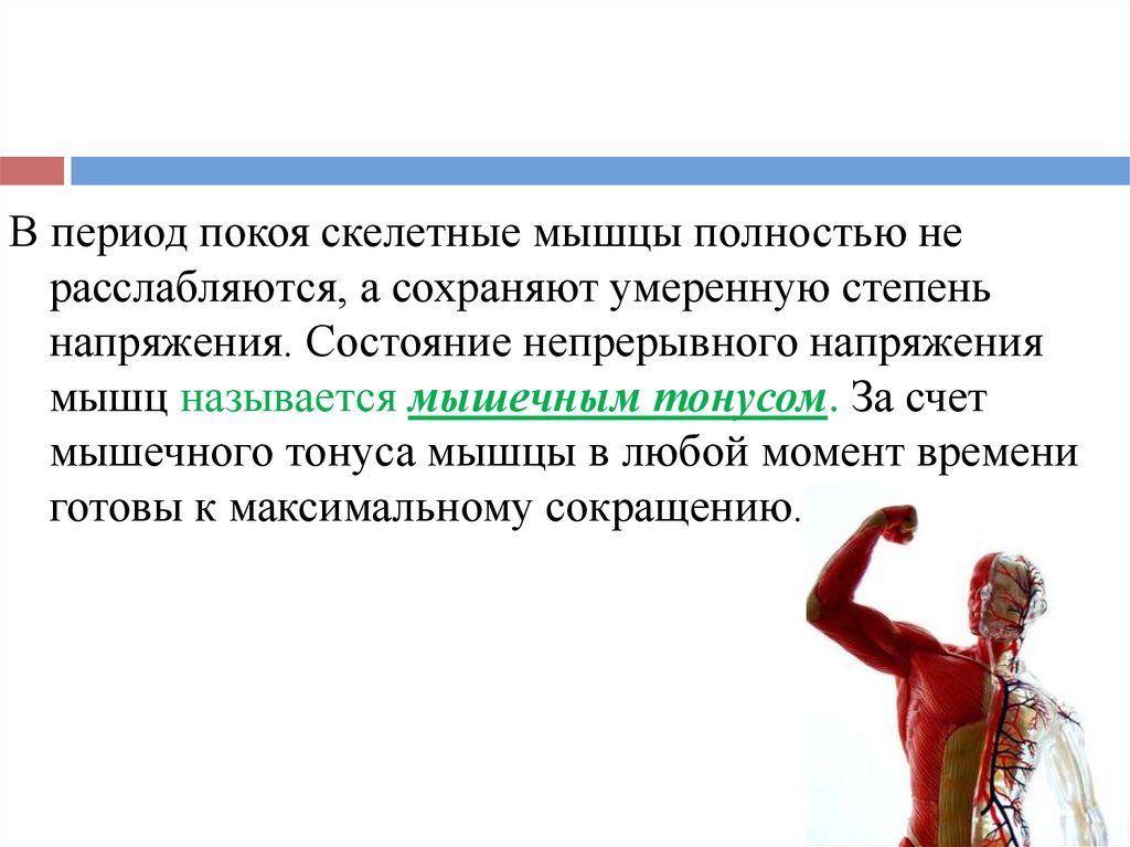 В период покоя скелетные мышцы полностью нерасслабляются, а сохраняют умеренную степень
