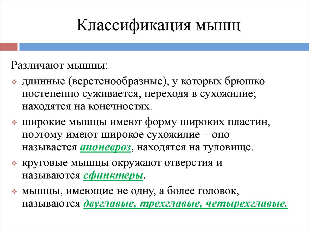 Классификация мышцРазличают мышцы: