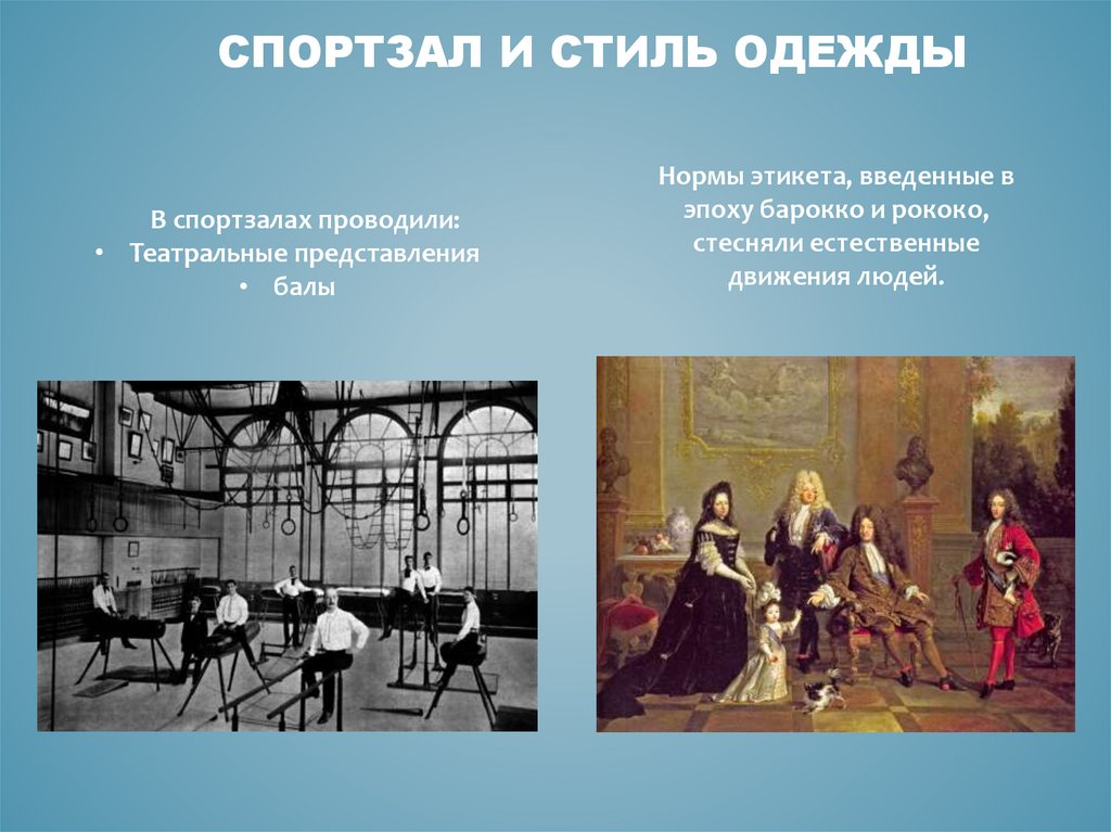 СПОРТЗАЛ И СТИЛЬ ОДЕЖДЫВ спортзалах проводили: