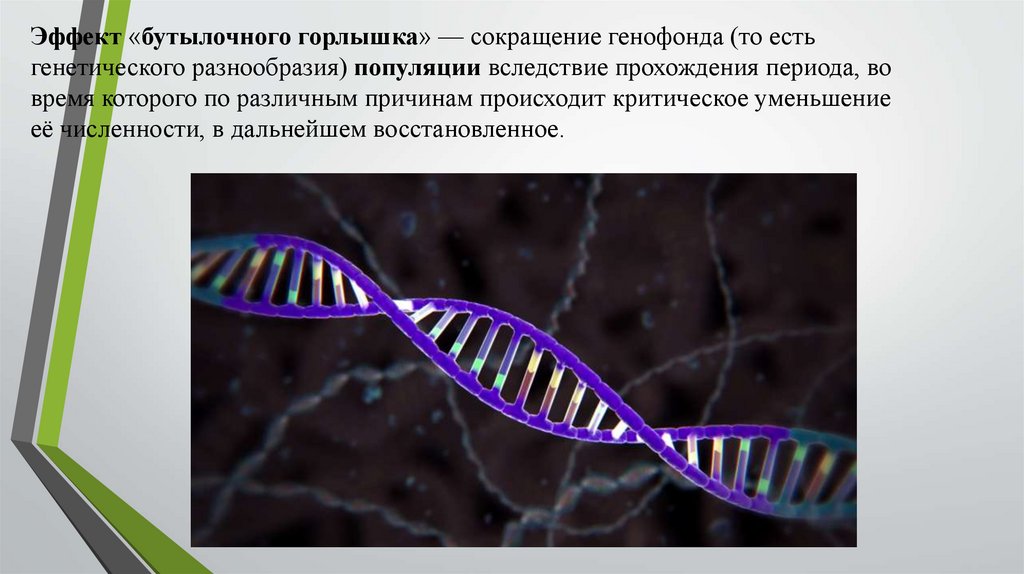 Эффект «бутылочного горлышка» — сокращение генофонда (то естьгенетического разнообразия) популяции вследствие прохождения периода, во