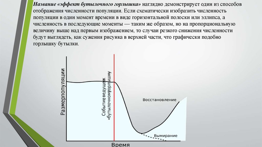 Название «эффект бутылочного горлышка» наглядно демонстрирует один из способовотображения численности популяции. Если схематически изобразить численность