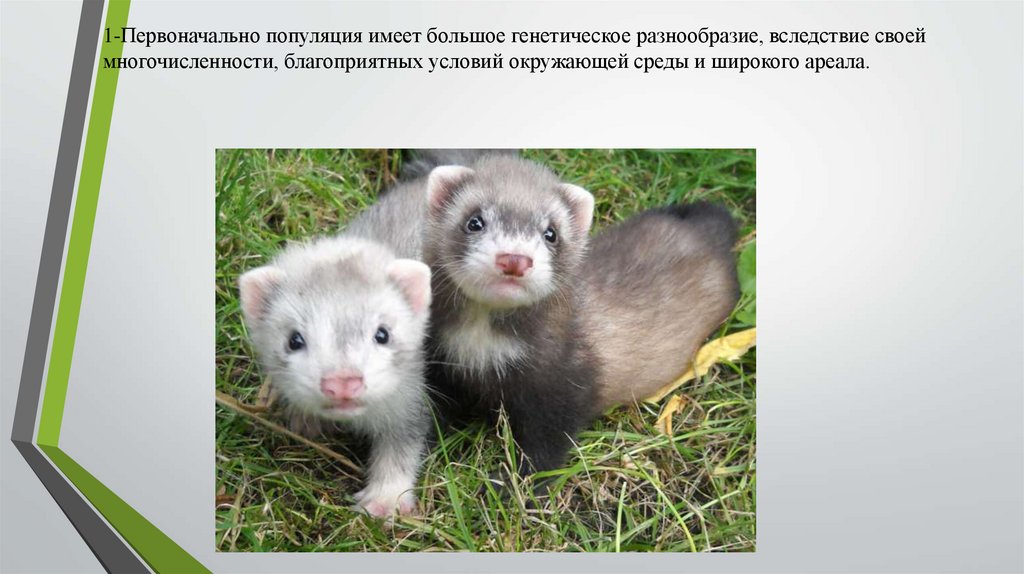 1-Первоначально популяция имеет большое генетическое разнообразие, вследствие своеймногочисленности, благоприятных условий окружающей среды и широкого ареала.