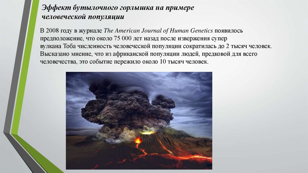 вулкана Тоба численность человеческой популяции сократилась до 2 тысяч человек.