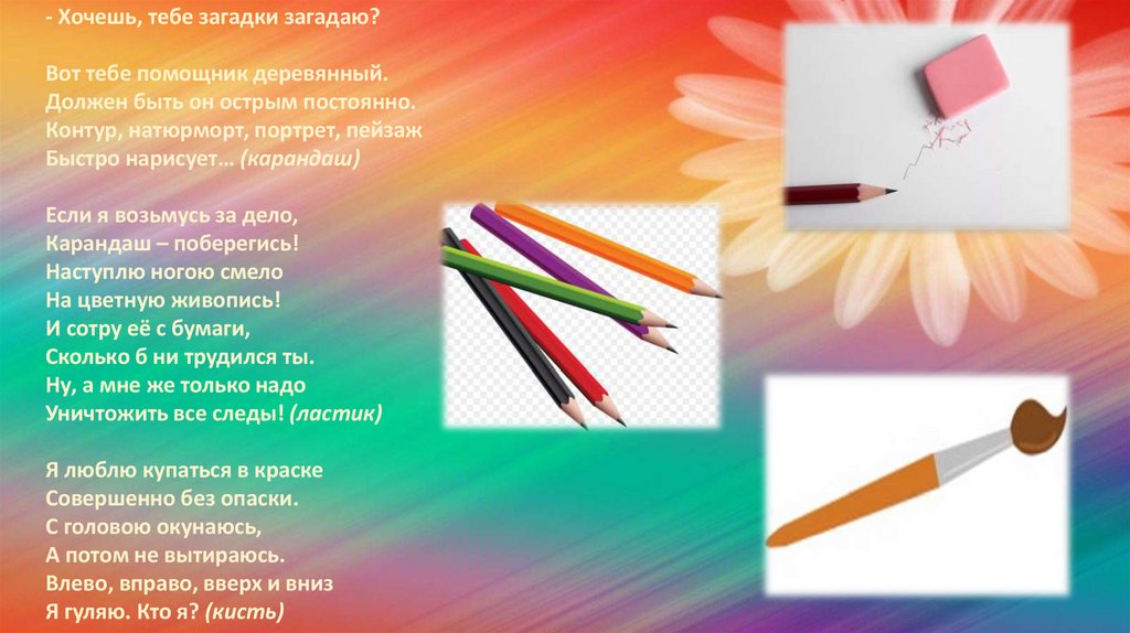 - Хочешь, тебе загадки загадаю?Вот тебе помощник деревянный.