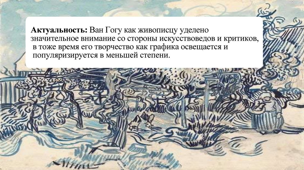 Актуальность: Ван Гогу как живописцу уделенозначительное внимание со стороны искусствоведов и критиков,