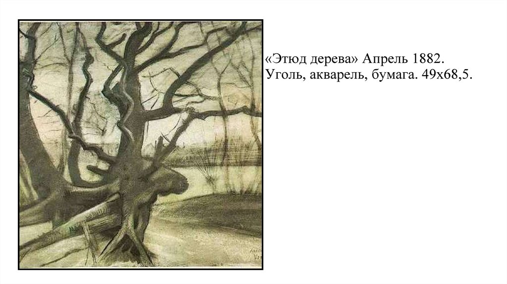 «Этюд дерева» Апрель 1882.Уголь, акварель, бумага. 49х68,5.