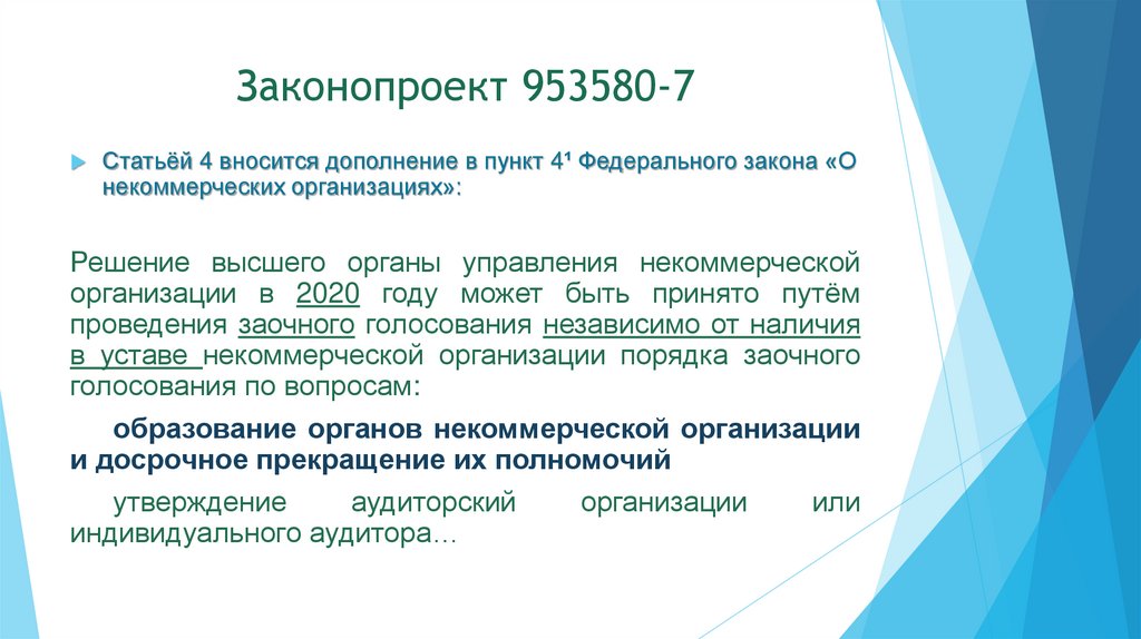Законопроект 953580-7Статьёй 4 вносится дополнение в пункт 4¹ Федерального закона «О