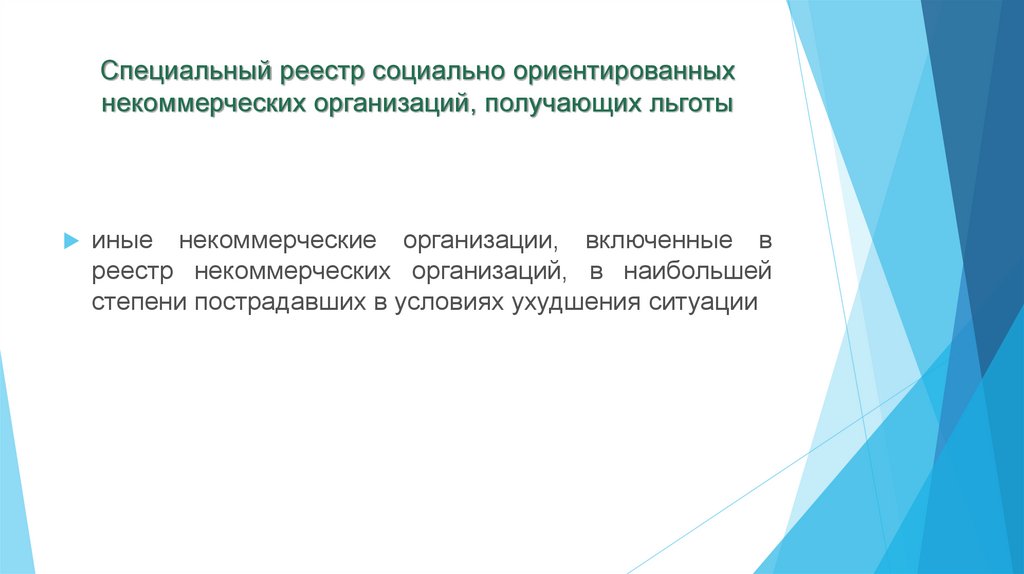 Специальный реестр социально ориентированныхнекоммерческих организаций, получающих льготы