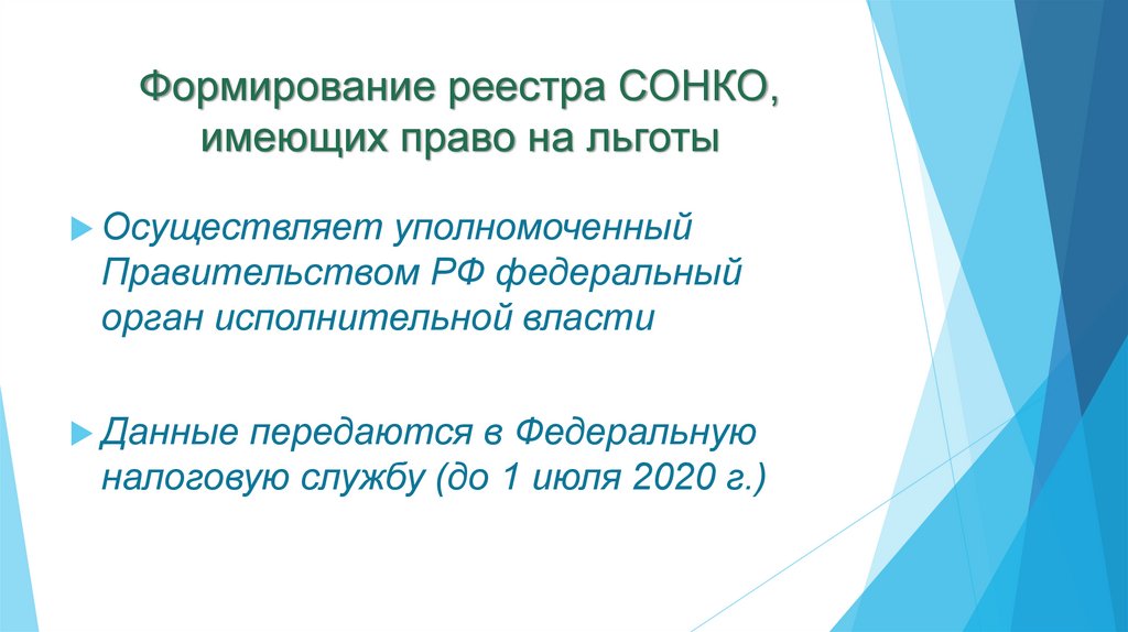 Формирование реестра СОНКО,имеющих право на льготы