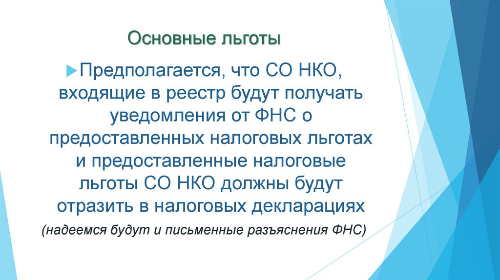 Основные льготыПредполагается,