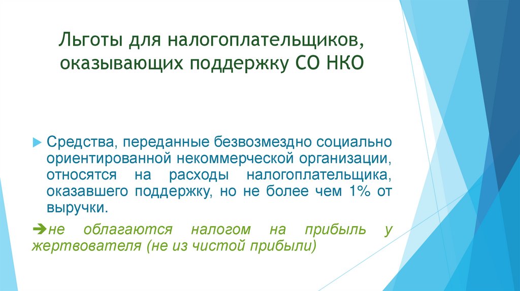 Льготы для налогоплательщиков,оказывающих поддержку СО НКО