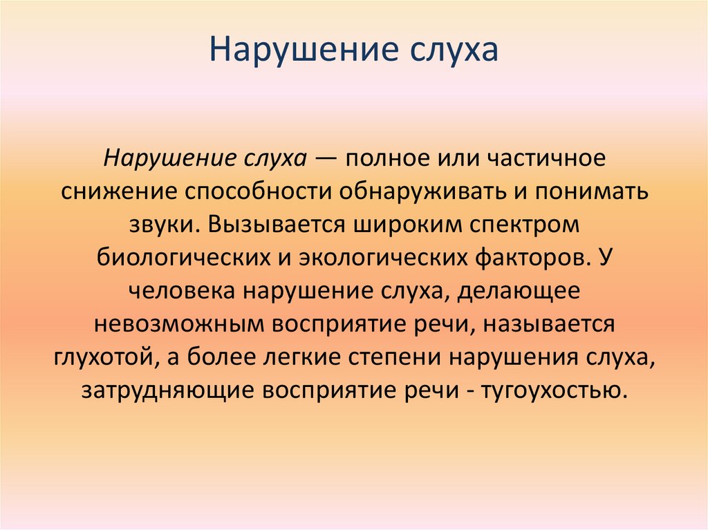 Нарушение слухаНарушение слуха — полное или частичное