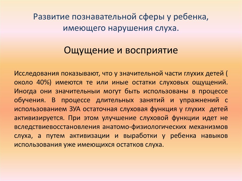 Развитие познавательной сферы у ребенка,имеющего нарушения слуха.