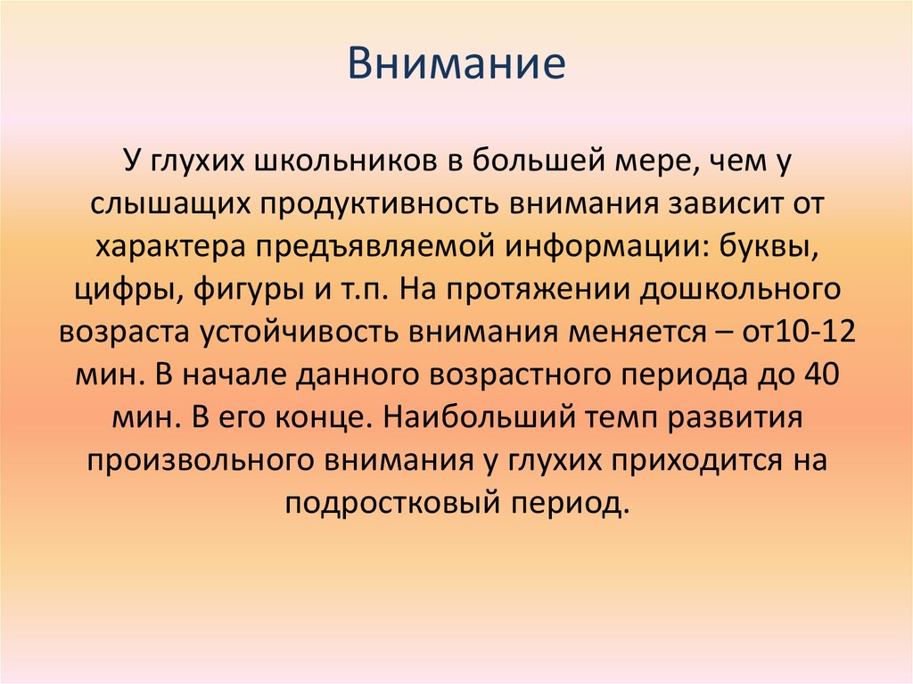 произвольного внимания у глухих приходится на