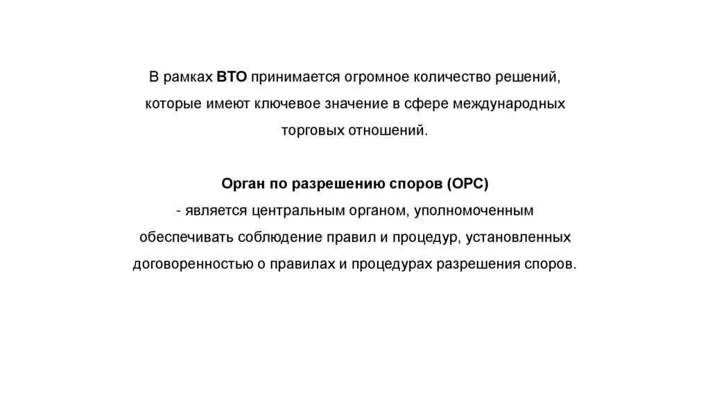 В рамках ВТО принимается огромное количество решений,которые имеют ключевое значение в сфере международных