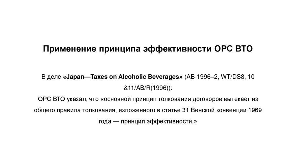 Применение принципа эффективности ОРС ВТОВ деле «Japan—Taxes on Alcoholic Beverages» (AB-1996–2, WT/DS8, 10