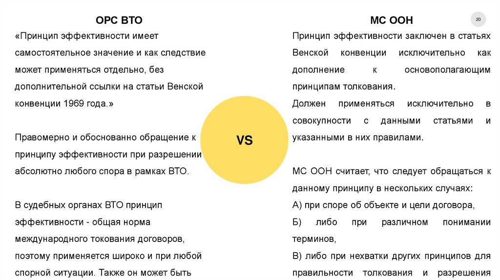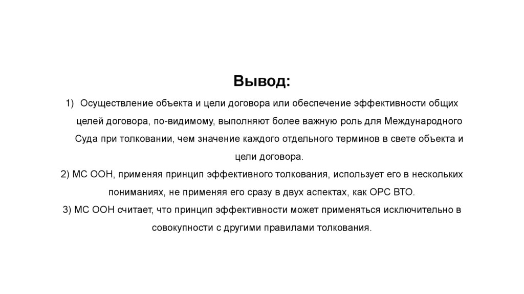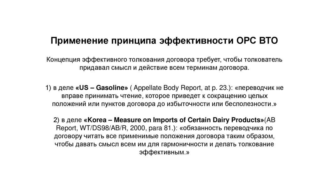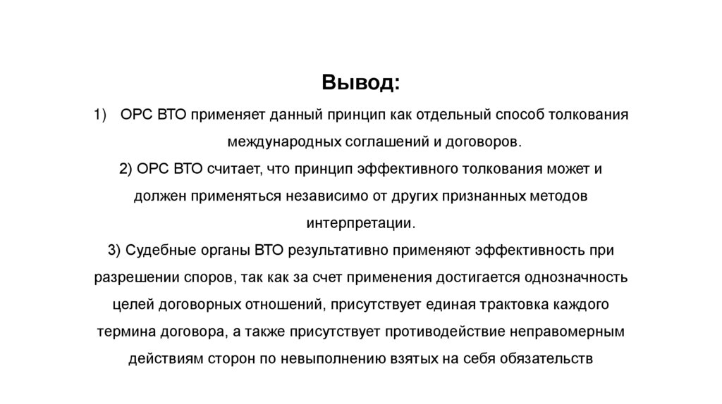 Вывод:1) ОРС ВТО применяет данный принцип как отдельный способ толкования