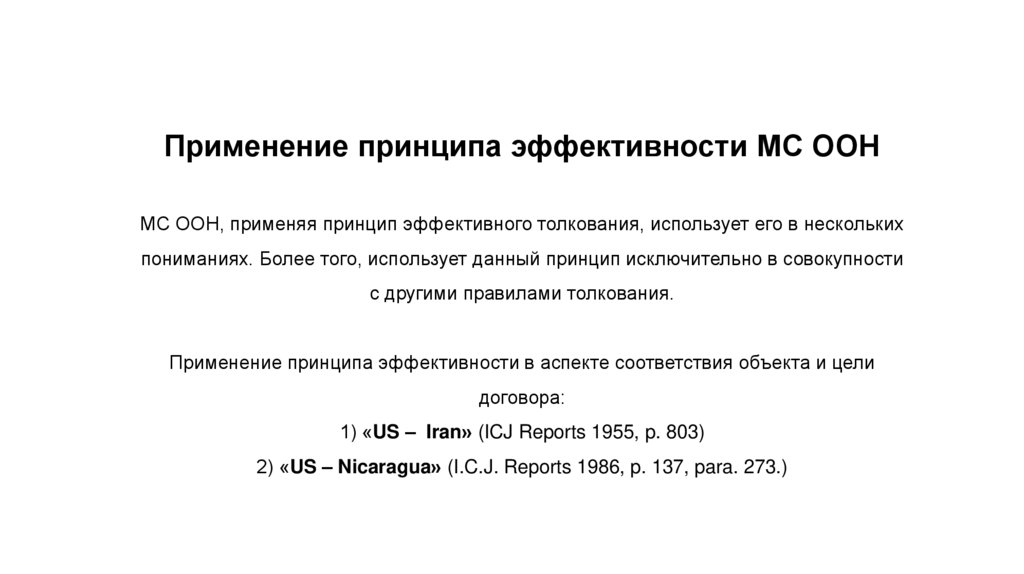 2) МС ООН, применяя принцип эффективного толкования, использует его в нескольких