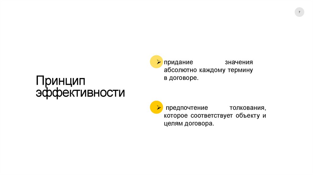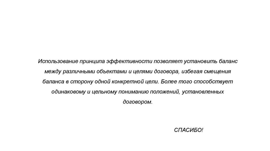 Использование принципа эффективности позволяет установить балансмежду различными объектами и целями договора, избегая смещения