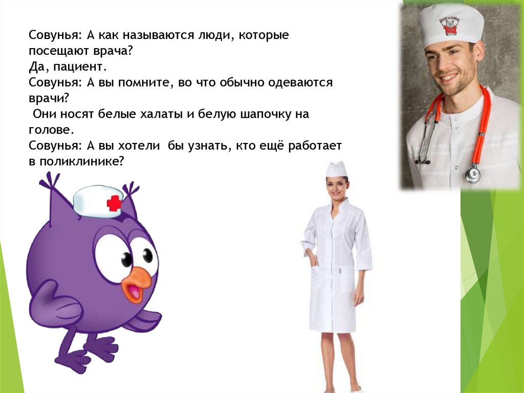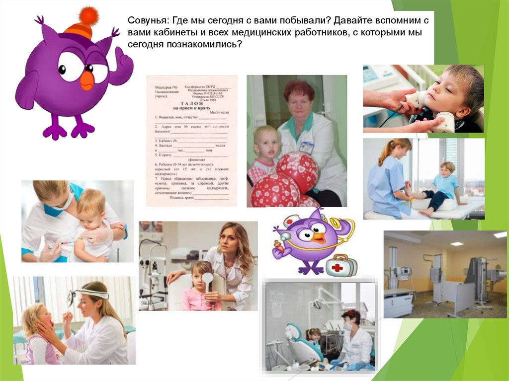 Совунья: Где мы сегодня с вами побывали? Давайте вспомним свами кабинеты и всех медицинских работников, с которыми мы