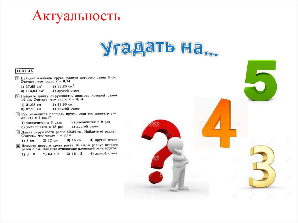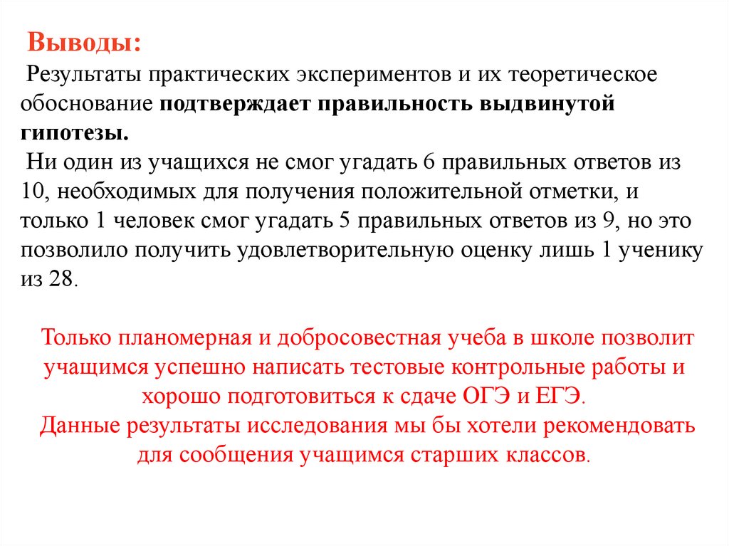 Процесс выполнения эксперимента1. Учащиеся угадывают ответы в контрольной работе в форме теста, не решая их.