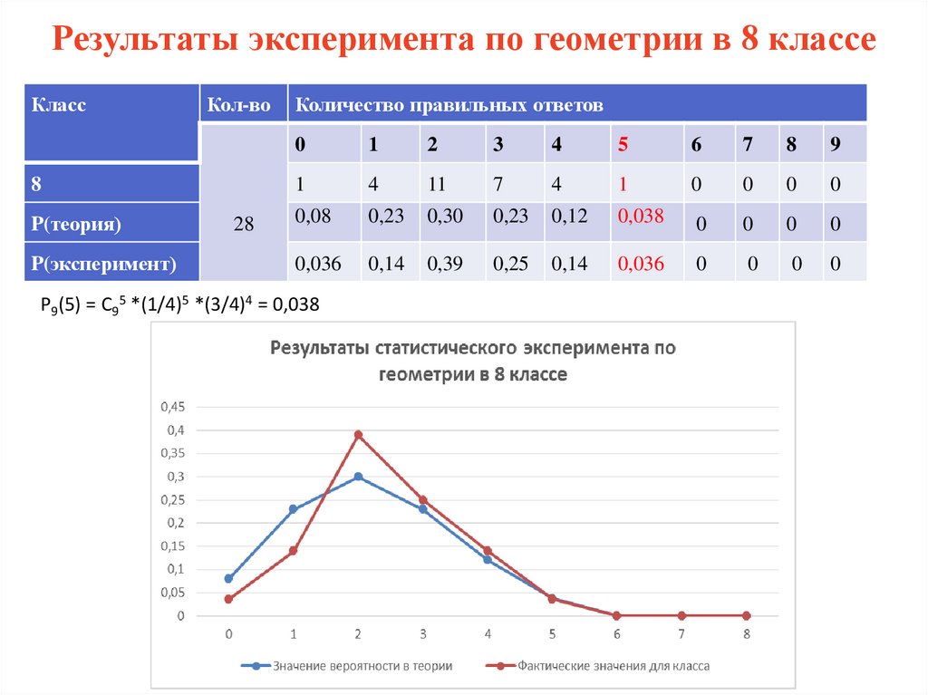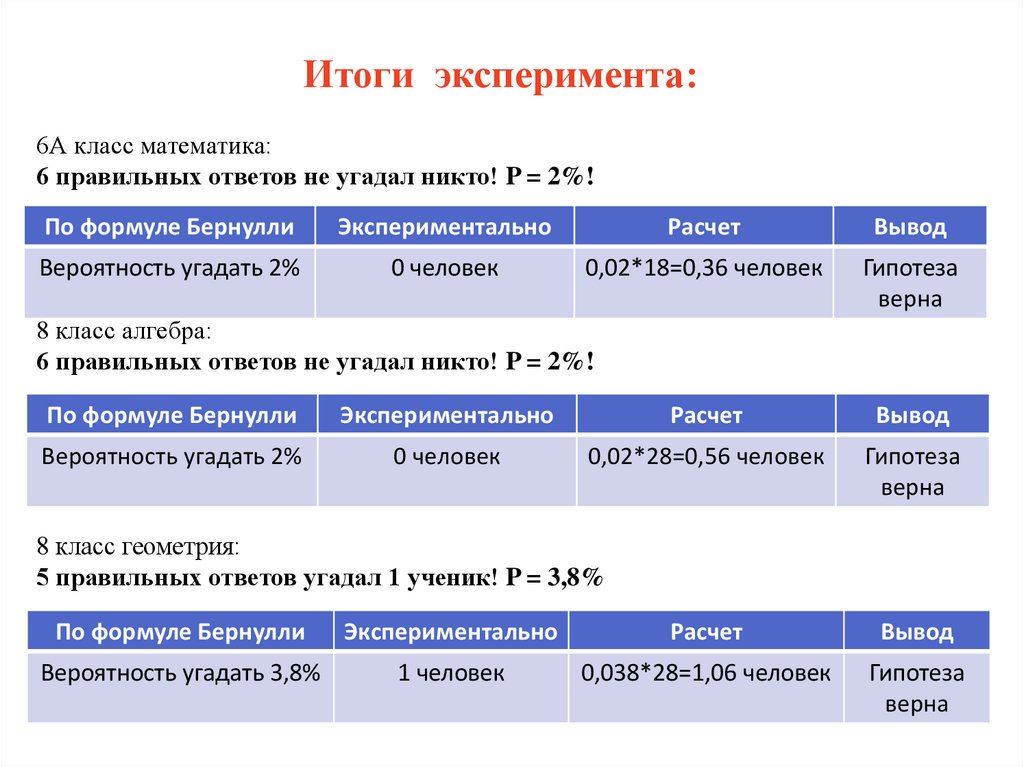 5 правильных ответов угадал 1 ученик! P = 3,8%