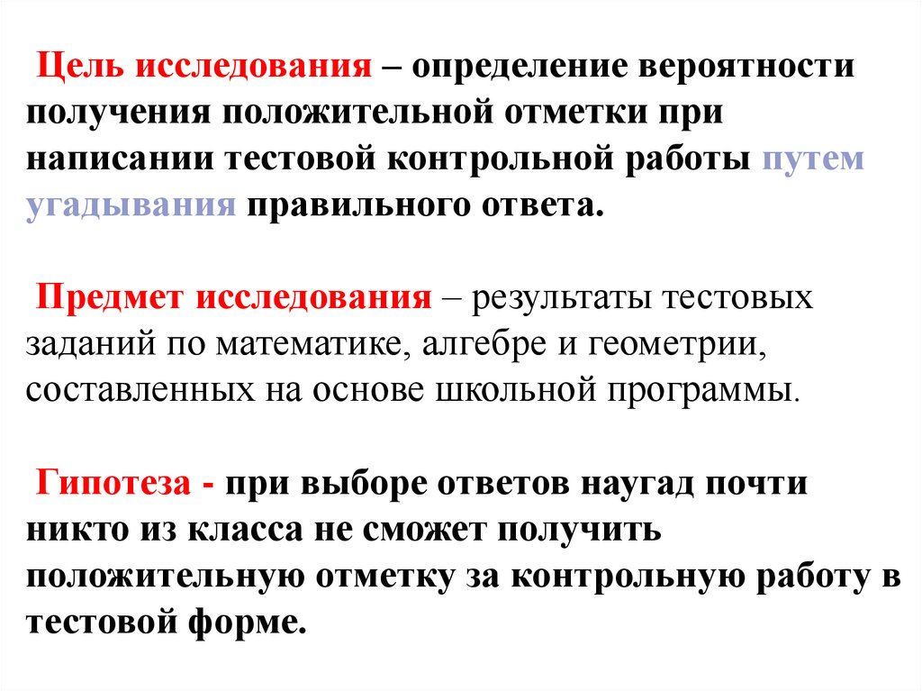 Цель исследования – определение вероятностиполучения положительной отметки при