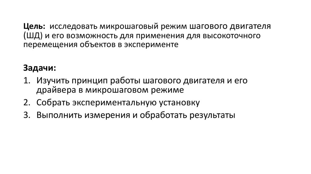Цель: исследовать микрошаговый режим шагового двигателя(ШД) и его возможность для применения для высокоточного