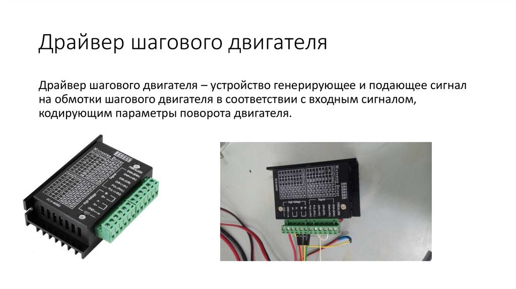 Драйвер шагового двигателяДрайвер шагового двигателя – устройство генерирующее и подающее сигнал