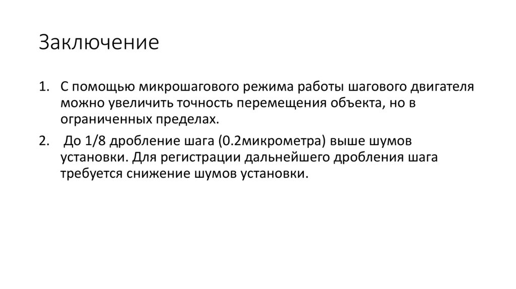 Заключение1. C помощью микрошагового режима работы шагового двигателя