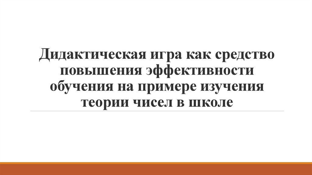 Дидактическая игра как средство повышения эффективности обучения на примере изучения теории чисел в школе